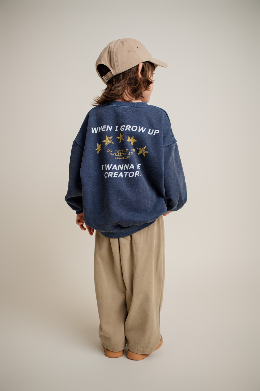 Mai mult decât un hanorac, e o declarație. Din bumbac moale și croi relaxed, poartă pe spate mesajul I wanna be a creator – un manifest pentru joacă, imaginație și libertatea de a-ți construi propriul univers. O piesă statement, confortabilă și plină de atitudine.