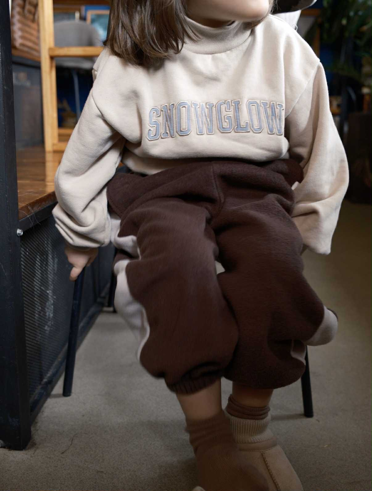 Pantaloni moi și călduroși, cu material fleece care înconjoară ușor picioarele. Croiala lejeră și culoarea caldă fac din ei o piesă perfectă pentru explorări line prin frunze sau zăpadă.